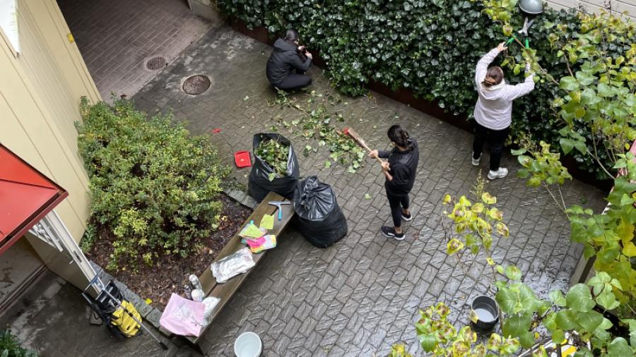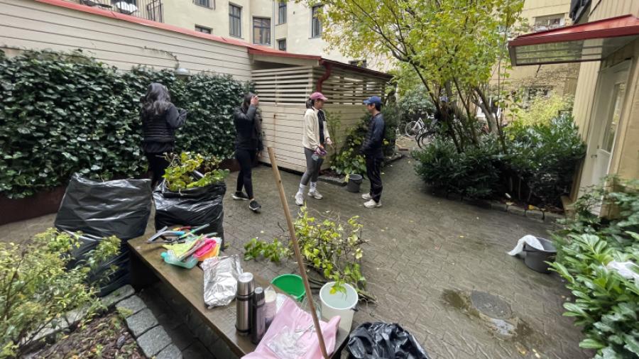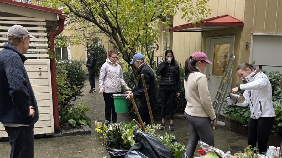 1/5 2/5 3/5 4/5 5/5 25 oktober 2025 Vilken uppslutning på höststädet! Så himla kul att halva huset slöt upp idag!Vi trotsade blöt mark och duggregn. Boende i C slipper nu slå sig fram med machete.T o m muren är renare än någonsin!